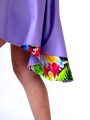Asymmetric skirt made of lilac cotton fabric, custom brand print detail on the long side of the wheel. Regular fit with zip opening. Fabric: 97% Cotton - 3% Stretch. Print Fabric: 18% Viscose - 82% Polyester.