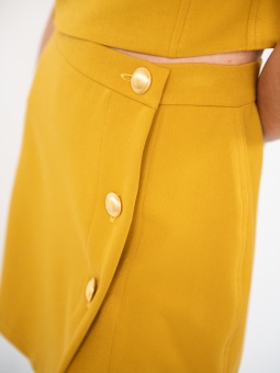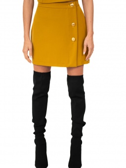 Minigonna portafoglio a vita alta in morbido tessuto con bottoni colore oro.Il pezzo forte dei tuoi look audaci. Tessuto bi-strech 35% Viscosa, 60% Poliestere, 5% Elasticizzato