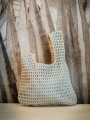 Borsetta da polso realizzata in tessuto denim colore azzurro con rete sovrapposta di colore oro.